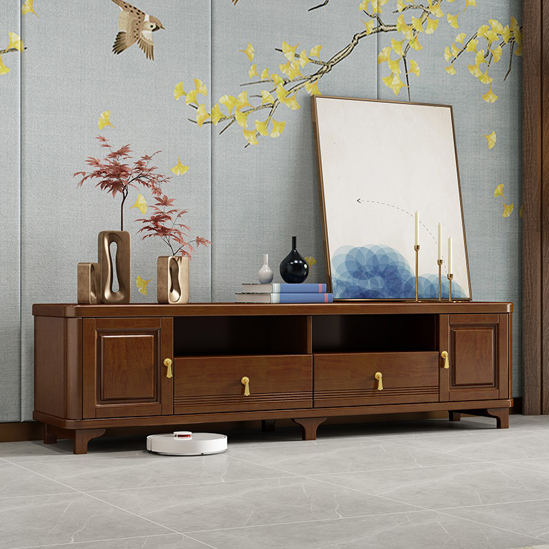青木川 中式实木电视柜落地2024新款客厅卧室加高款收纳储物柜置物架矮柜家具影视柜地柜 海棠色 长宽高:200x38x60cm