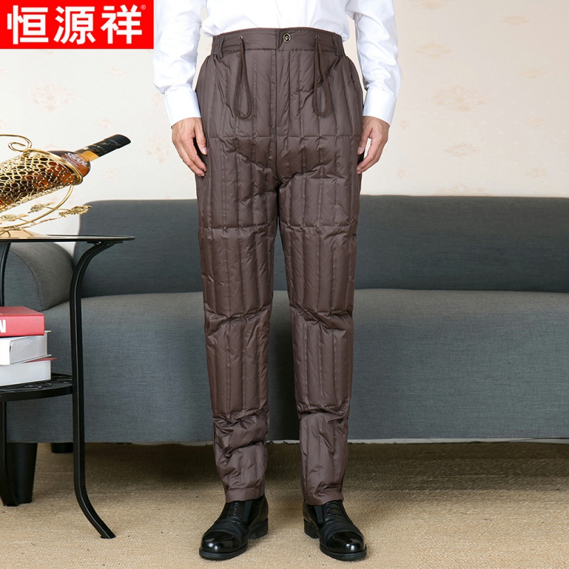 正品恒源祥羽绒裤内胆中老年男装内外穿宽松加厚羽绒裤加大码爸爸 2XL码(建议2尺5-2尺8) 咖啡色
