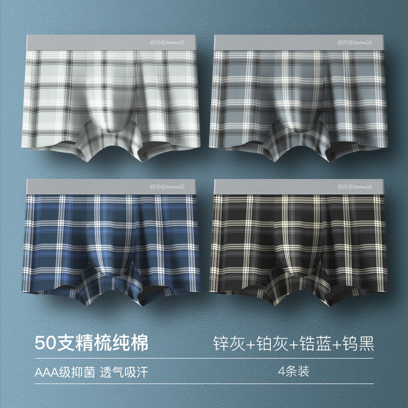 恒源祥纯棉内裤男士平角裤印花潮流四角青少年短裤头棉男生_845 185/3XL 【AAA级抗菌GL4888】钨黑+铂灰+锌灰+锆蓝