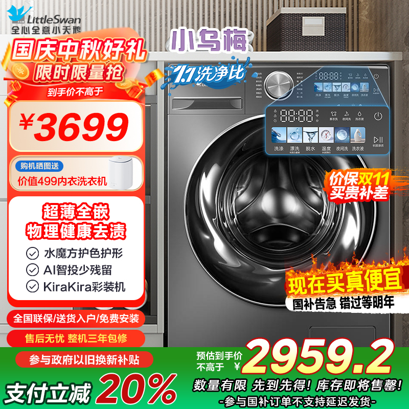 小天鹅(Little Swan)纤彩超薄全嵌小乌梅洗衣机10KG全自动变频水魔方滚筒洗脱一体TGSC83