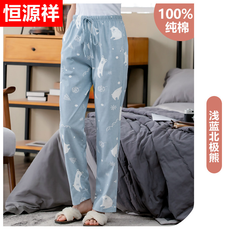 恒源祥睡裤女纯棉长裤春秋夏季薄款空调裤棉宽松可外穿家居裤冬_128 160(M) 【单条装】浅蓝北极熊