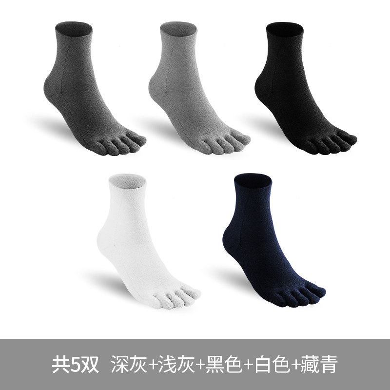 恒源祥夏季男士纯棉五指袜中筒分趾棉袜薄款短袜子四季透气袜BY 100%棉抗菌中厚(中筒)A1111580 1蓝+1麻灰+1黑+1白+1深灰