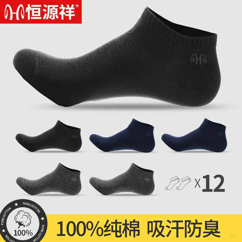 恒源祥袜子男短袜纯棉夏季吸汗男士船袜棉薄款运动男袜_675 均码(40-45码纯棉防臭) 黑色+藏青+深灰4黑色4藏青4深灰