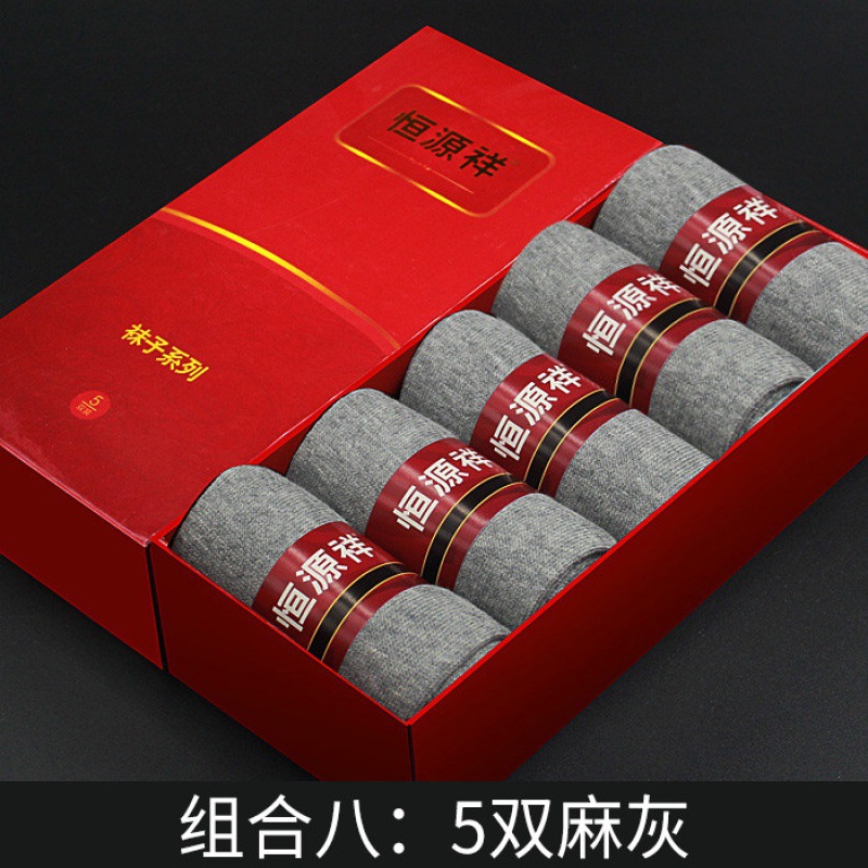 恒源祥棉五指袜男纯棉四季加厚袜中筒男士棉袜春秋中厚棉袜短袜_910 全棉五指袜,100%棉礼盒装 组合8:5麻灰
