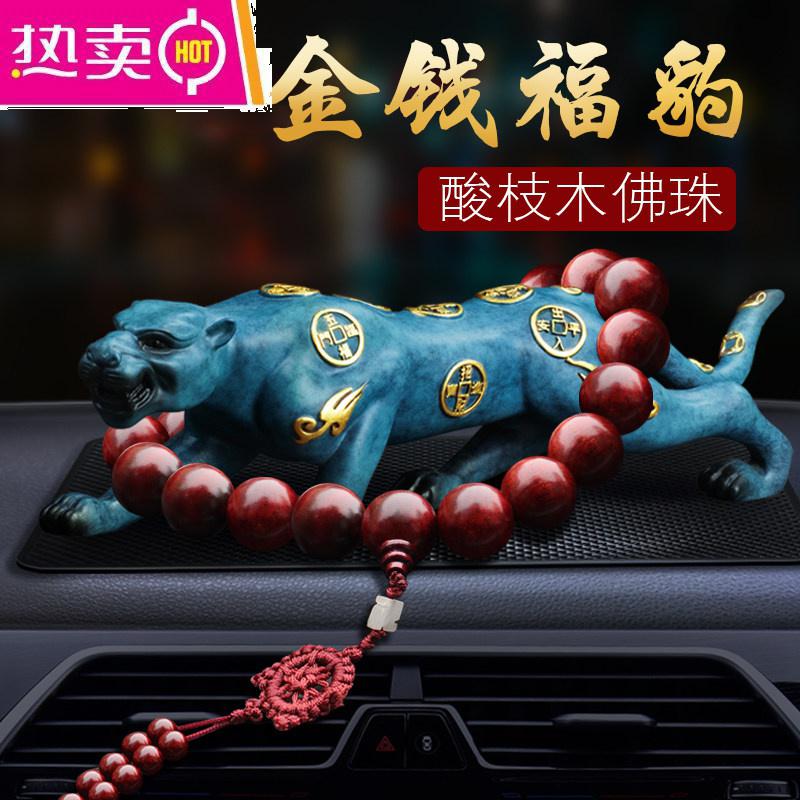 金钱豹汽车摆件2021新款高级男士纯铜豹子车载大气中控台车内饰品_769 纯铜金钱豹-冰裂蓝+酸枝木佛珠