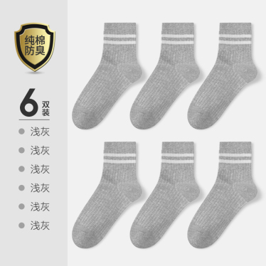 恒源祥袜子男士纯棉中筒袜春秋全棉秋冬季防臭黑色吸汗抗菌长袜潮 6双四季透气纯棉抗菌6白色 均码纯棉消臭闪电发货