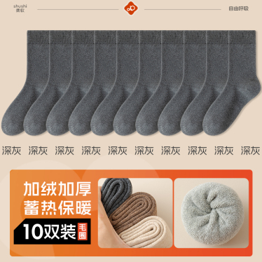 南极人袜子男款秋冬季中筒袜加绒加厚毛巾棉袜保暖男士长筒长袜PB 加绒加厚-10双装10深灰 均码收藏加购优先发货