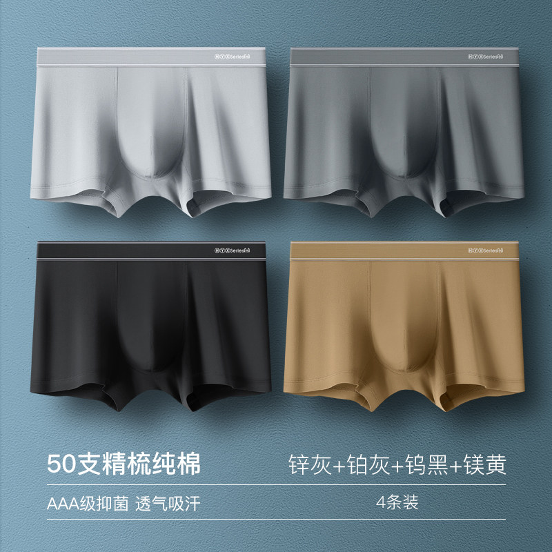 恒源祥男士纯棉内裤男石墨烯四角裤衩男生大码宽松平角短裤头_103 175/XL 4885【纯棉抗菌】钨黑/铂灰/锌灰/镁黄