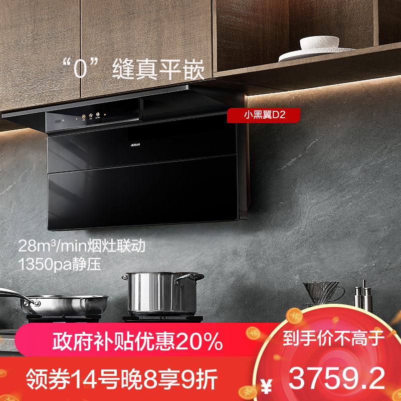 老板(Robam)[小黑翼D2]智能大吸力 超薄顶侧双吸抽油烟机 28立方大风量家用大吸力一级能效27A21-D2