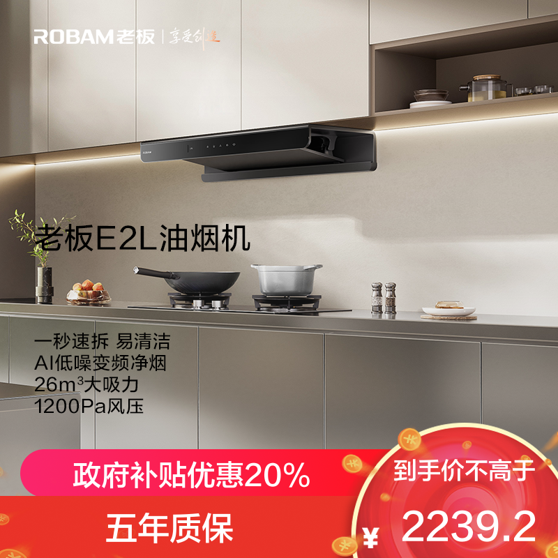 老板(Robam)[双子星E2L]油烟机灶具套装 烟灶联动26风量1200Pa变频抽油烟机大吸力静音63A2-E2L