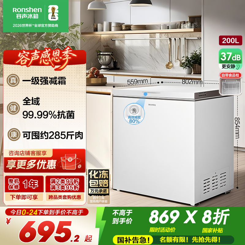 容声(Ronshen)200升减霜冰柜家商两用冷藏冷冻转换单温一级能效节能省电卧式冷柜 BD/BC-200ZMSMB