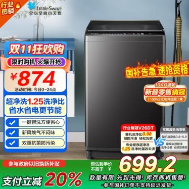 [苏宁自营]小天鹅(LittleSwan)波轮洗衣机全自动 直驱变频 10公斤 深层净洗 一键智洗TB100V26DT