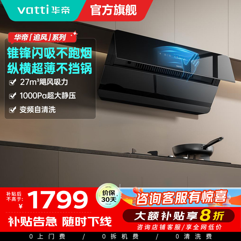 华帝(VATTI)[追风系列]烟灶联动侧吸式超薄抽油烟机变频27风量大吸力降噪 自动清洗挥手智控i111A7