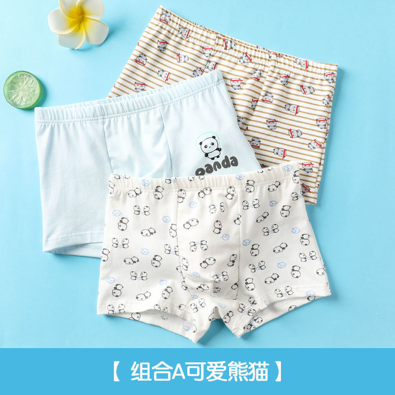 恒源祥儿童内裤男女童纯棉平角四角短裤头棉宝宝小童中大童夏季_669 高110/120cm重/33/43斤 可爱熊猫【男】