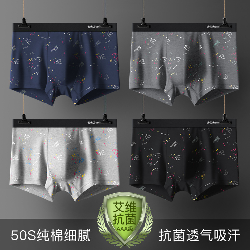 恒源祥男士内裤纯棉平角裤男加大码四角短裤头棉男生宽松夏 L 4771黑色+藏青+深灰+浅灰
