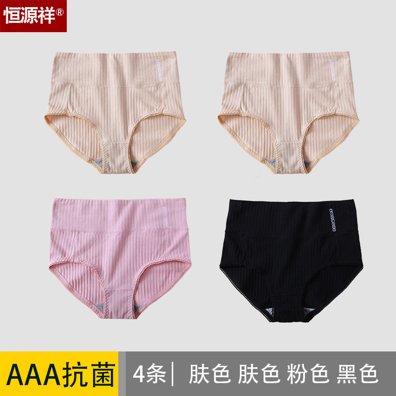 恒源祥内裤女高腰收腹提臀纯棉大码孕妇妈妈中腰三角短裤女 XXXL 高腰棉质收腹抗菌(肤色肤色粉色黑色)