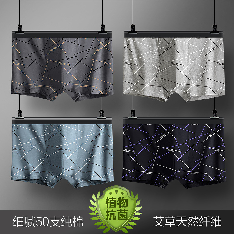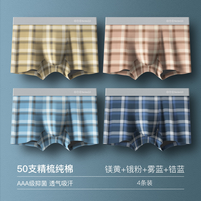 恒源祥纯棉内裤男士平角裤印花潮流四角青少年短裤头棉男生_845 175/XL 【AAA级抗菌GL4888】锆蓝+雾蓝+镁黄+锇粉
