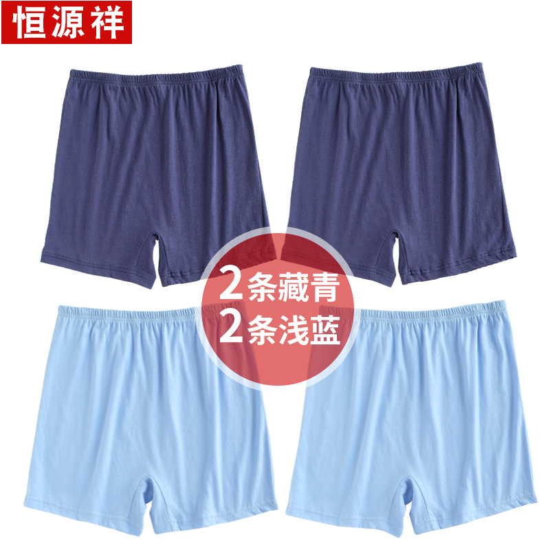 恒源祥纯棉男士内裤中老年人四角裤头爸爸加大码宽松全棉平角短裤 XXXXXL否 2藏青+2浅蓝
