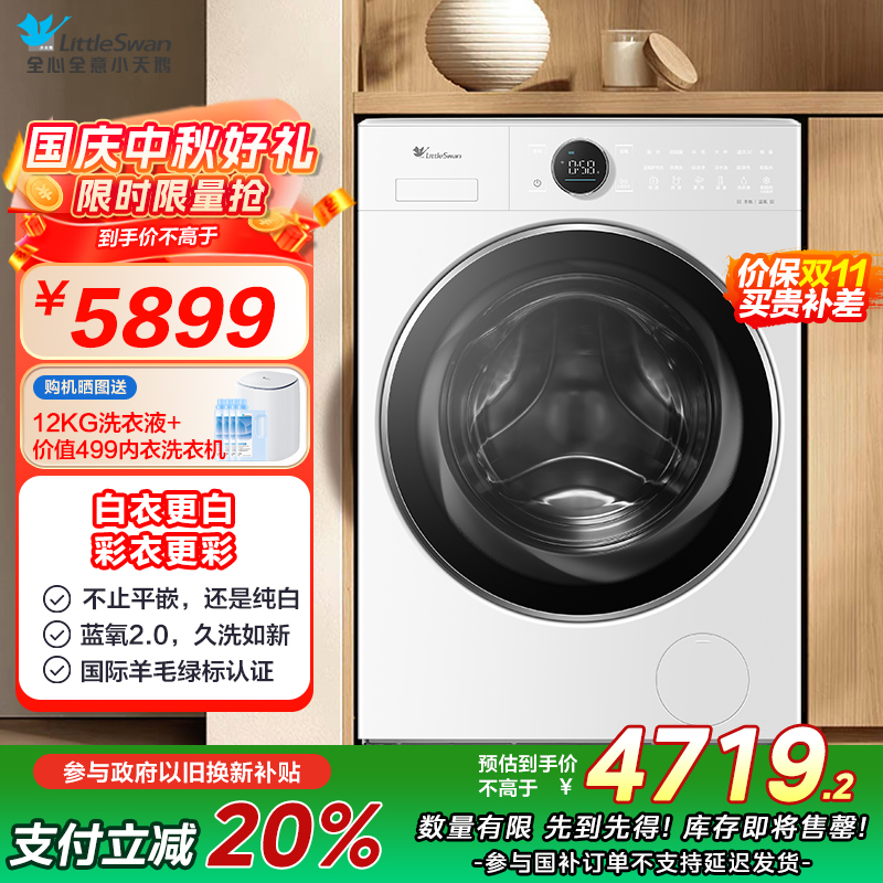 小天鹅(LittleSwan)滚筒洗衣机全自动纯平全嵌蓝氧防串色 10kg纳米银离子除菌[小蓝鲸2.0]TG10VE80