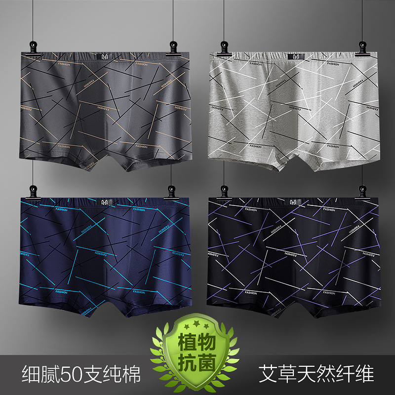 恒源祥男士内裤男纯棉平角裤潮流青年大码宽松透气短裤头裤衩_824 180/2XL AAA级植物抗菌【潮流印花1180A】深灰/浅灰/藏青/黑色