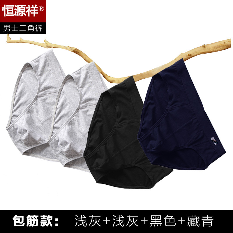 恒源祥男士内裤男三角裤纯棉质短裤透气性感莱卡棉中高腰大码裤头_743 XXXL 包筋(浅灰+浅灰+深灰+黑色)