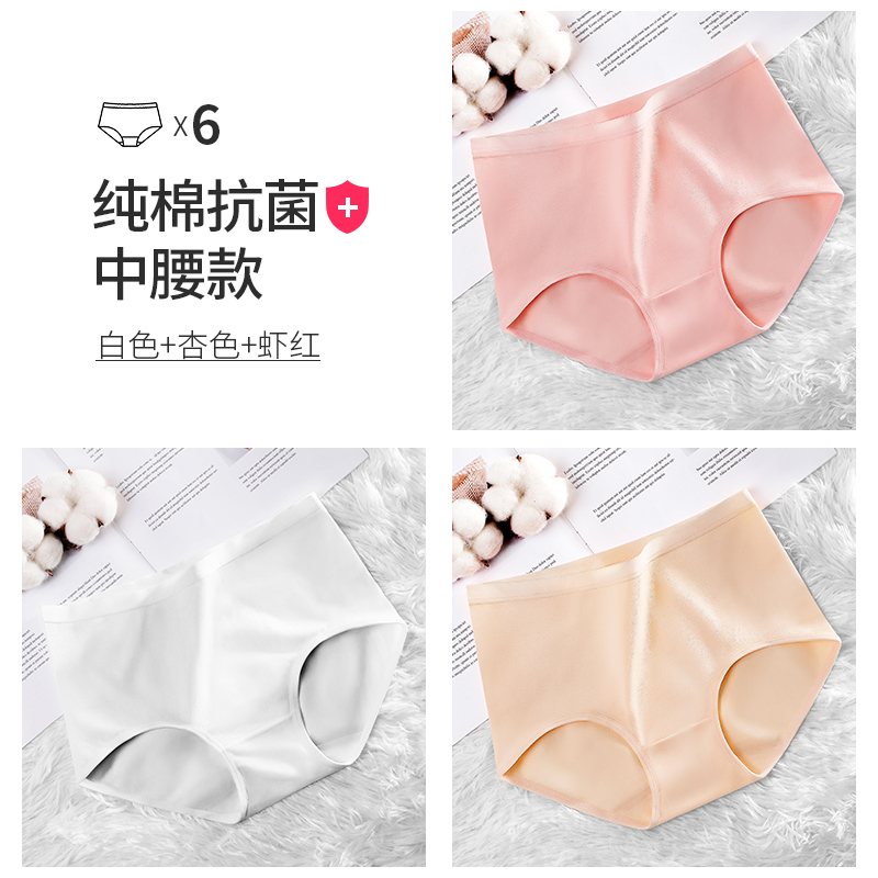 恒源祥中腰三角内裤女士全纯棉舒适透气夏天无痕少女收腹短裤 S 白杏虾3条