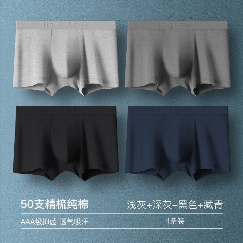 恒源祥男士内裤男薄款纯棉石墨烯四角短裤头男生运动平角裤衩 190/4XL 【50S纯棉】锌灰+钴蓝+锆蓝+雾蓝