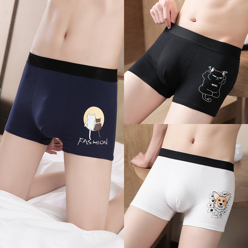 恒源祥青少年内裤男纯棉平角裤透气个发育期学生四角裤潮流 185/110 月亮猫+wifi猫+柯基