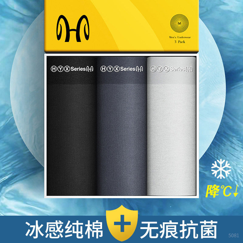 恒源祥男士内裤男纯棉夏季薄款透气平角无痕大码运动四角短裤 175/XL AAA级抗菌【80s冰棉5081A】3条装