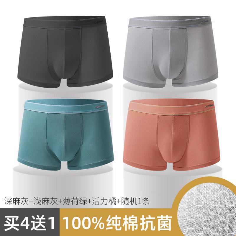 恒源祥内裤男士纯棉四角裤男生大码平角裤头底裤透气裤衩短裤_303 185/110 薄荷绿1深麻灰1浅麻灰1活力橘1