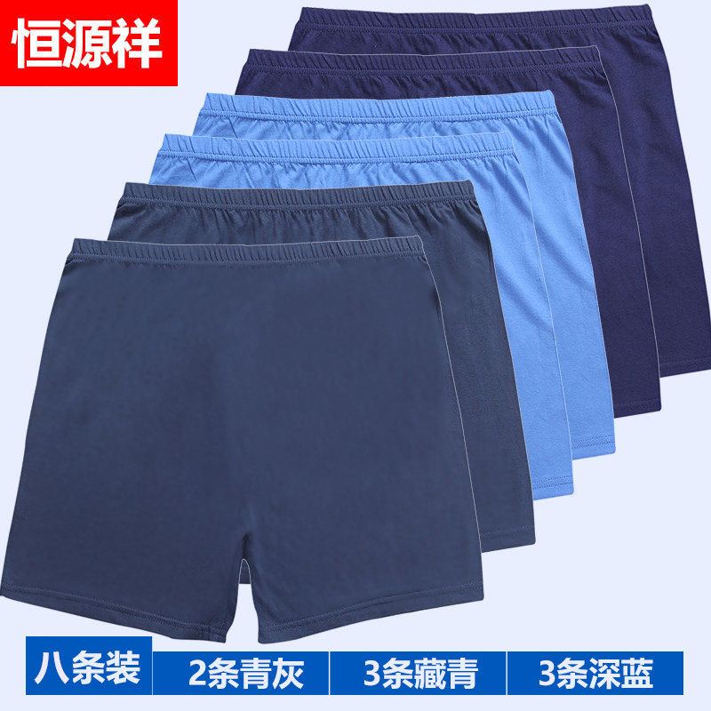 恒源祥中老年人男士内裤纯棉平角宽松加肥加大肥佬爸爸四角短裤头 L 【8条】2条青灰色+3条藏青色+3条深蓝色