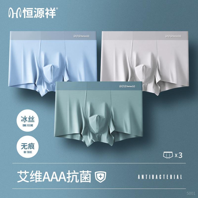 恒源祥男士平角内裤男无痕冰丝透气四角裤男生潮流短裤头夏季_981 L 【无痕冰丝AAA级抗菌】浅蓝+豆绿+银灰