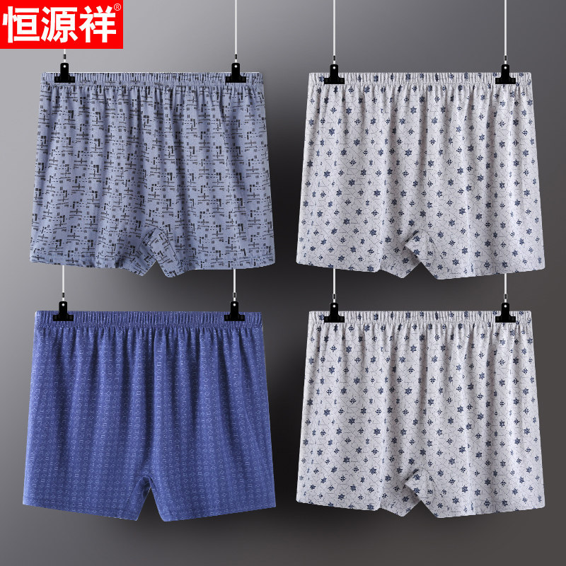 恒源祥中老年人内裤男士纯棉爸爸平角宽松大码肥佬四角裤衩短裤头 195/120 铁灰+藏青+银灰+银灰