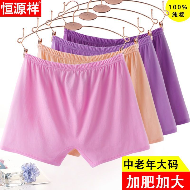 恒源祥中老年人内裤女纯棉平角高腰四角短裤妈妈大码三角宽松棉 2XL 四角纯色(1玉色1粉色1浅紫1深紫)