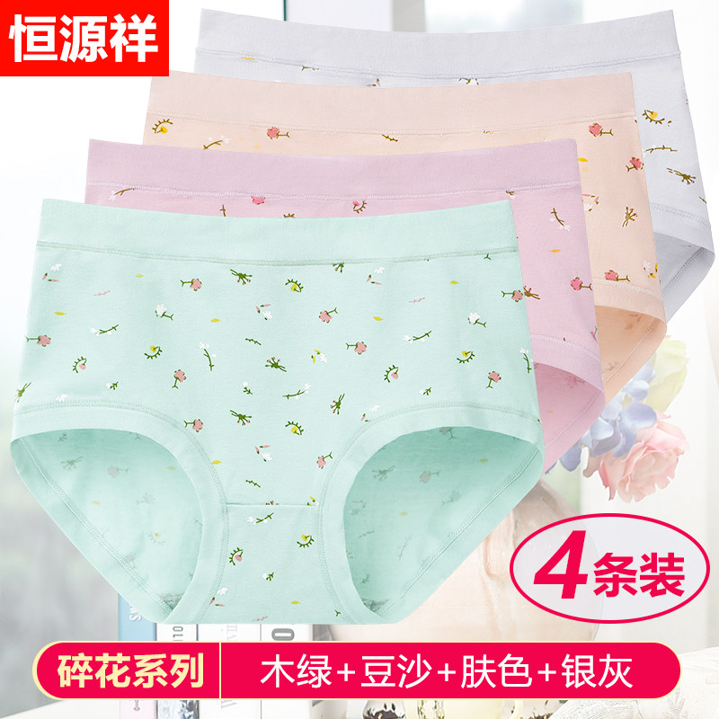 恒源祥女士内裤高腰纯棉棉裆夏季薄大码中老年妈妈三角裤头 190/XXXXL否 【碎花】木绿+豆沙+肤色+银灰