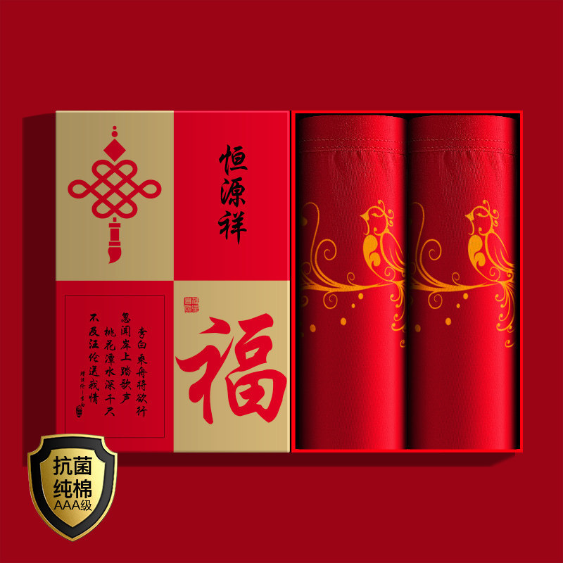 恒源祥纯棉少女士内裤本命年大红色棉属牛年三角短裤头_639 165/L 双喜临门9031【喜上眉梢款*2】