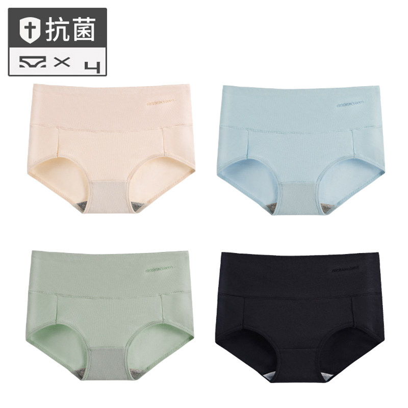 恒源祥女士内裤女高腰纯棉裆透气收腹大码石墨烯无痕三角裤头 170 【4条装】肤色+果绿+蓝色+黑色
