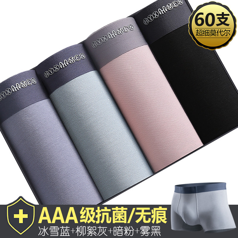 恒源祥男士内裤莫代尔平角裤薄款无痕夏季冰丝透气四角裤短裤_1 180/XXL 【60S莫代尔无痕爽滑C4】冰雪兰+柳灰+暗粉+雾黑