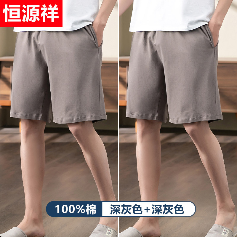 恒源祥男士睡裤纯棉可外穿五分裤夏季薄款宽松大裤衩居家休闲短裤 180(XXL) 深灰色+深灰色