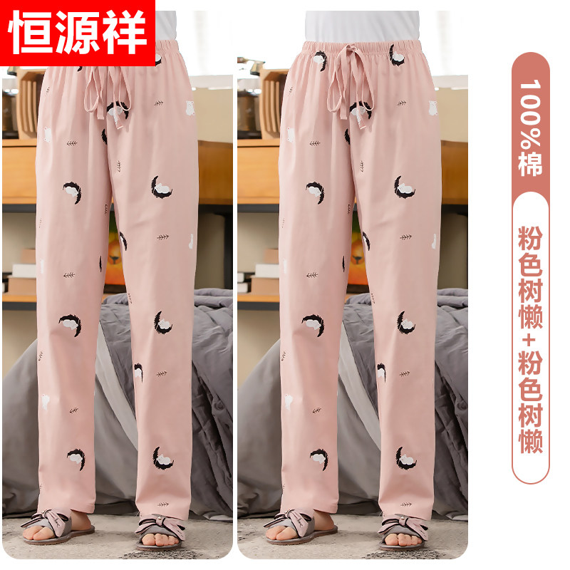 恒源祥睡裤女纯棉长裤春秋夏季薄款空调裤棉宽松可外穿家居裤冬_128 175(XXL) 【2条装】粉色树懒+粉色树懒
