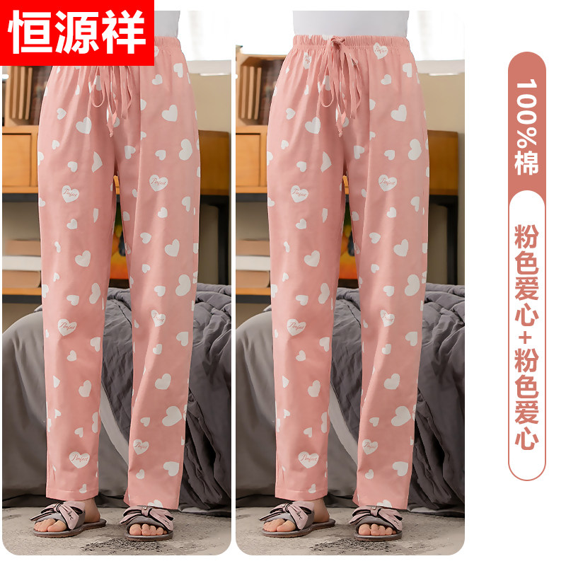 恒源祥睡裤女纯棉长裤春秋夏季薄款空调裤棉宽松可外穿家居裤冬_128 170(XL) 【2条装】粉色爱心+粉色爱心