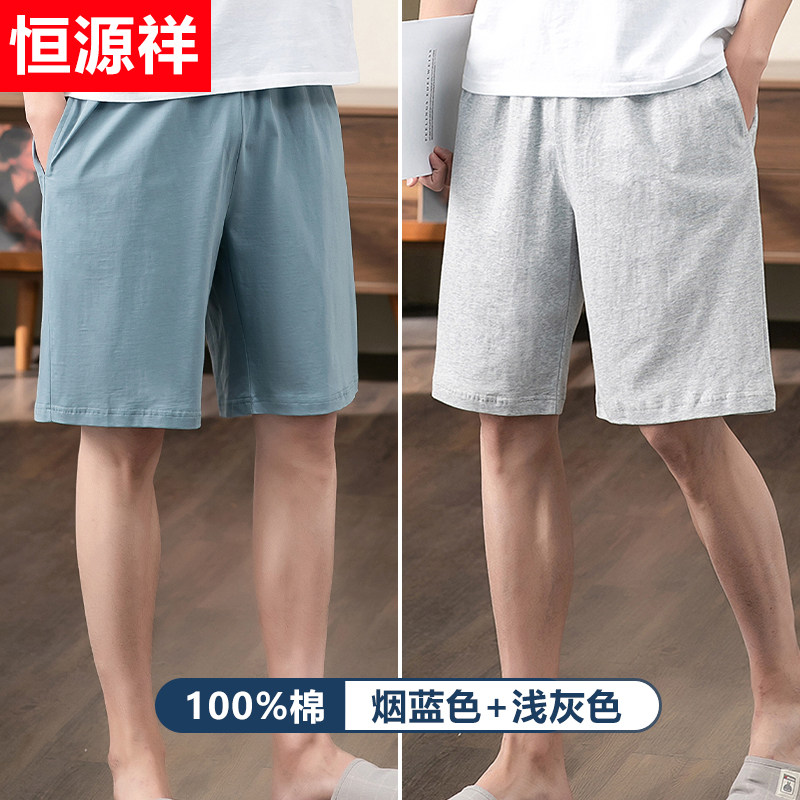 恒源祥男士睡裤纯棉可外穿五分裤夏季薄款宽松大裤衩居家休闲短裤 180(XXL) 烟兰色+浅灰色