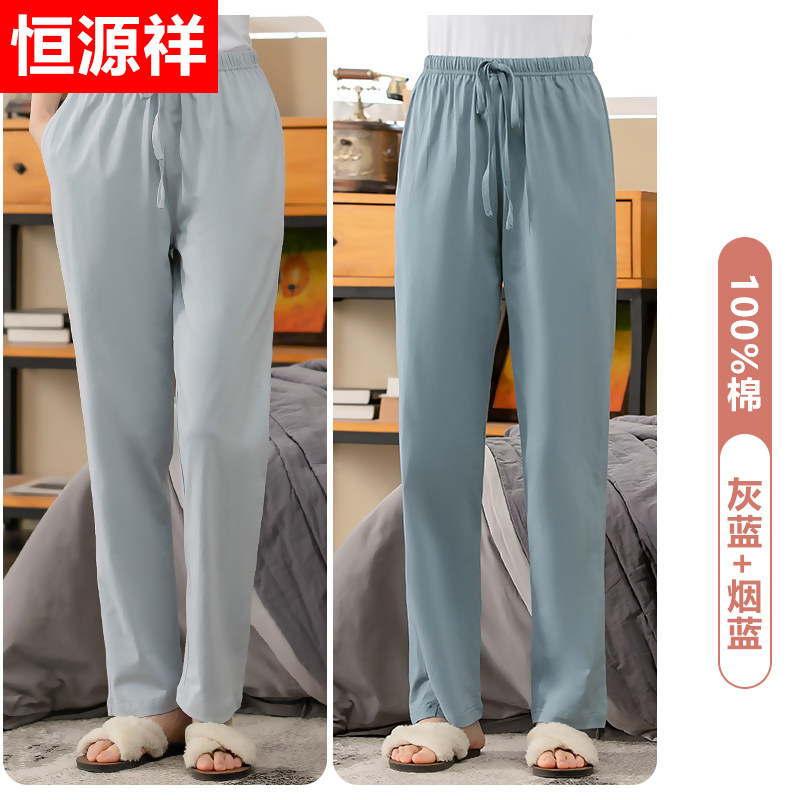 恒源祥睡裤女纯棉长裤春秋夏季薄款空调裤棉宽松可外穿家居裤冬_128 160(M) 【2条装】灰蓝+烟蓝