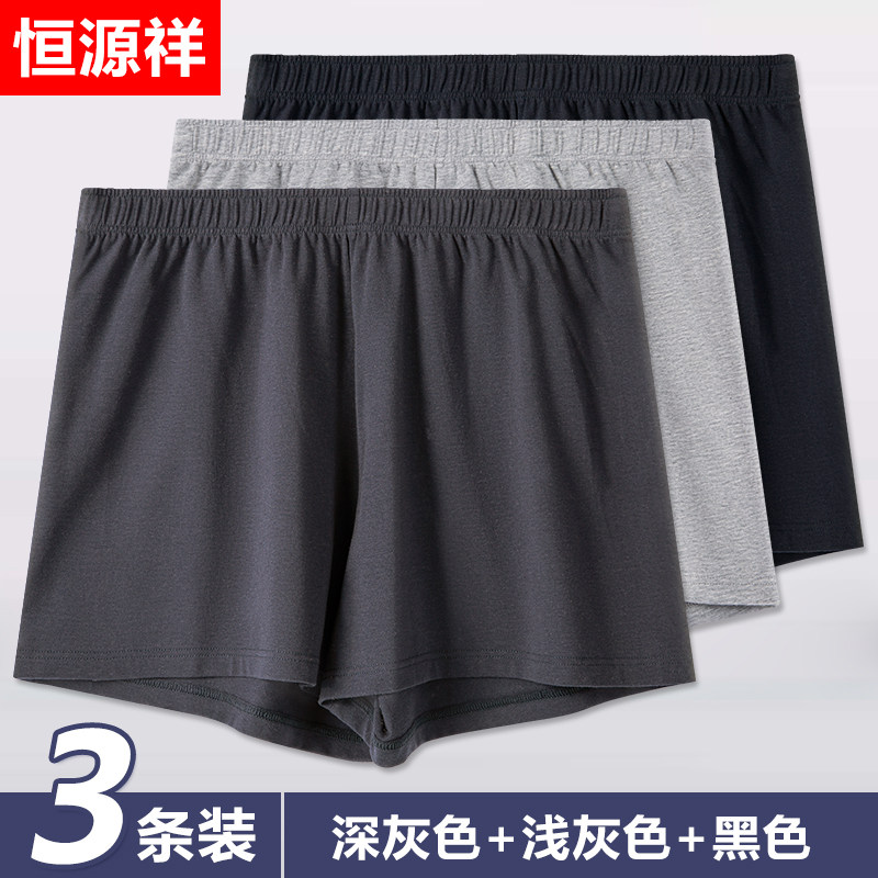 恒源祥内裤男士纯棉大码平角睡裤透气全棉宽松四角短裤阿罗裤 175/XL 【深灰+浅灰+黑色】3条装