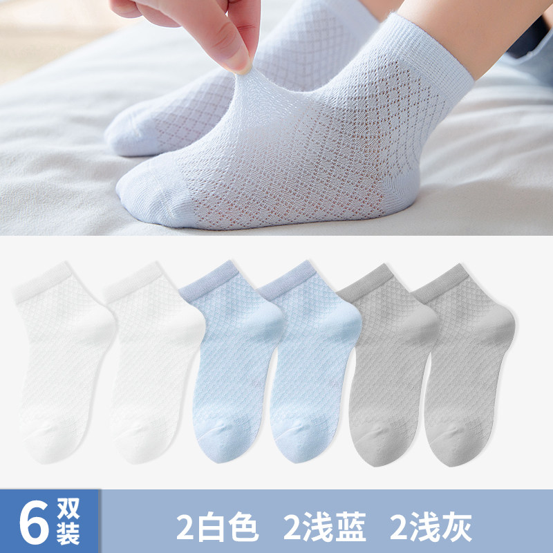 恒源祥儿童袜子春夏季薄款棉袜网眼透气男童女童春秋中大童宝宝袜_304 L-脚长16-18cm(6-8岁) 2白2浅灰2浅蓝