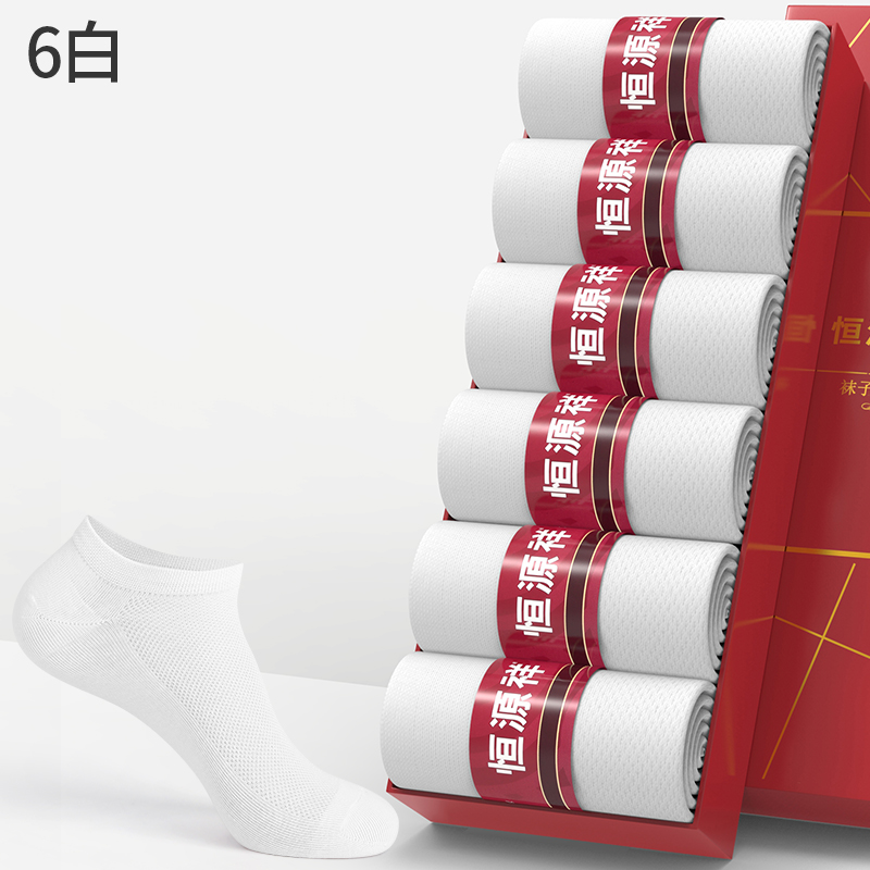恒源祥夏季薄款浅口白色船袜纯棉男士袜子全棉透气排汗网眼短筒袜_1 男士短筒(38-44码) 春夏网眼款-6白