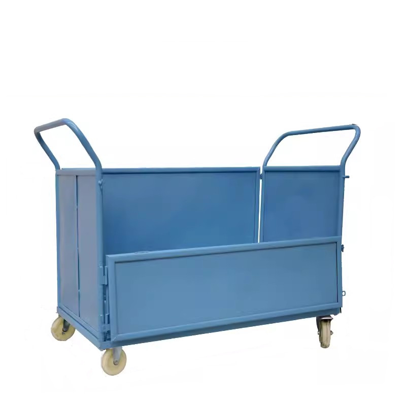 迅迈 半折叠板车蓝色大号(5寸尼龙轮)拉货手推车 折叠平板搬运车 轻便仓库物流围栏车网格车间周转车