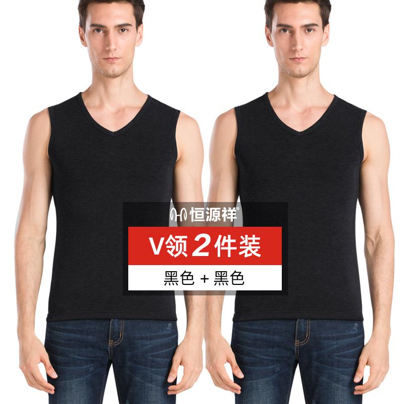 恒源祥男士德绒保暖背心加绒加厚无痕打底棉马甲内穿上衣秋冬季_867_927 190/4XL 【V领】黑色+黑色