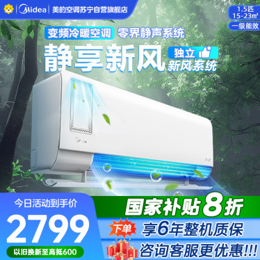 美的空调挂机1.5匹 静新风 新一级能效 变频节能冷暖两用 卧室壁挂式家用空调KFR-35GW N8XF1-1