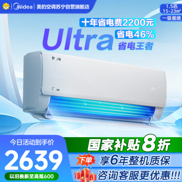 美的空调挂机大1.5匹 酷省电Ultra 新一级家用变频冷暖卧室节能省电 25年新品 KFR-35GW N8KS1-1U